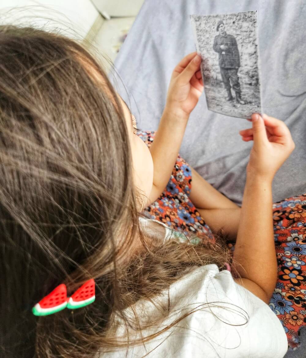 Fiica mea, Iunona, cu poza străbunicului său, Dumitru